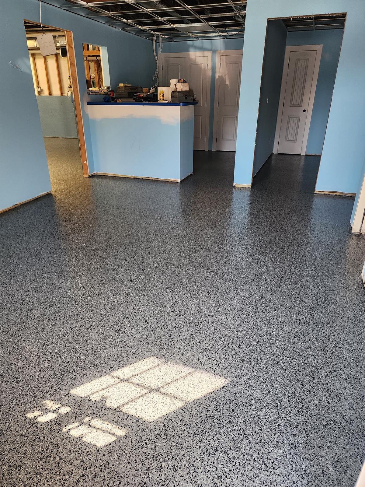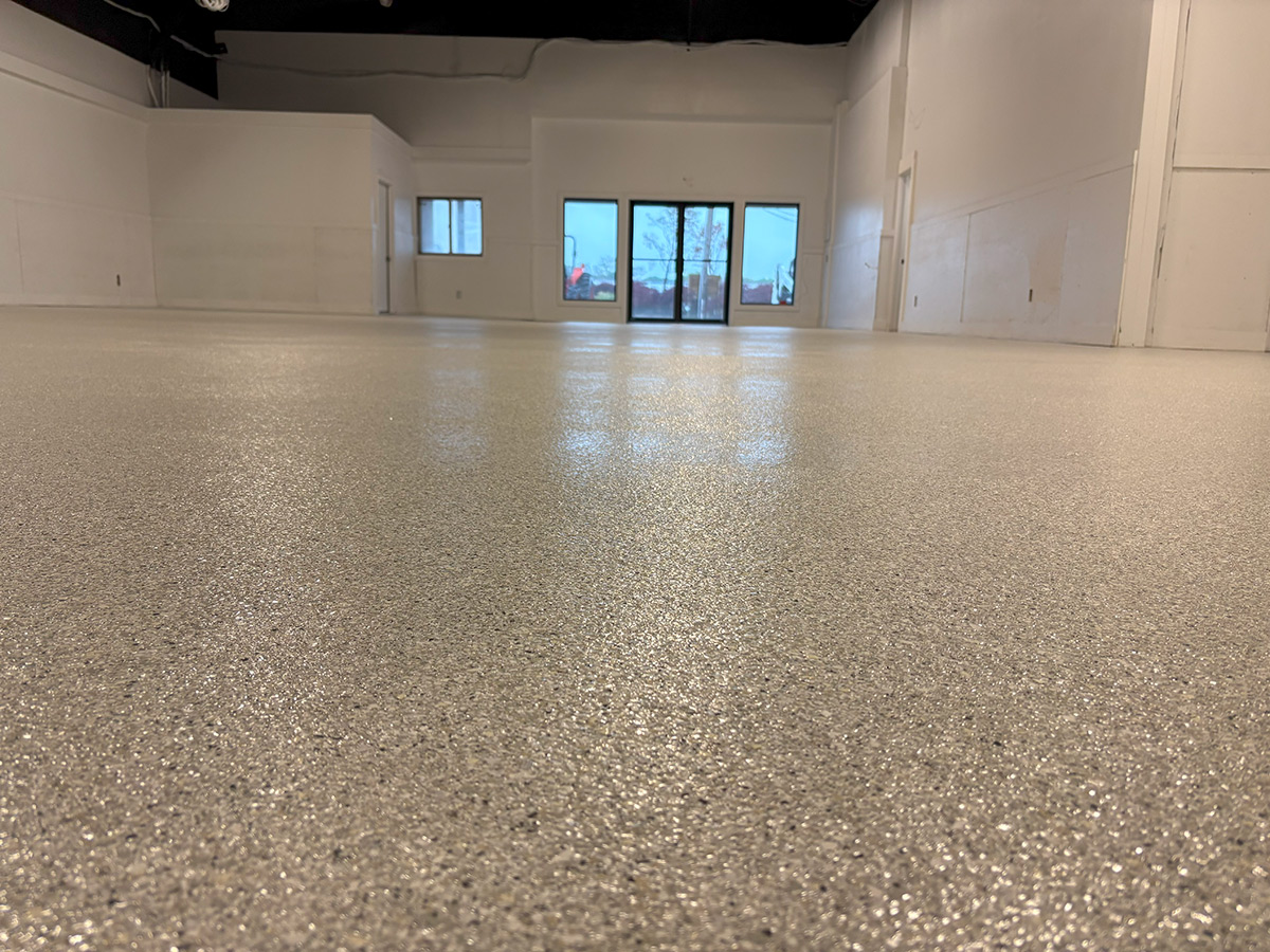 Epoxy flooring for office and retail spaces offers a sleek and professional flooring solution that combines durability with a modern aesthetic. This seamless and high-gloss surface is not only visually appealing but also highly resistant to stains, wear and tear, and is easy to clean.